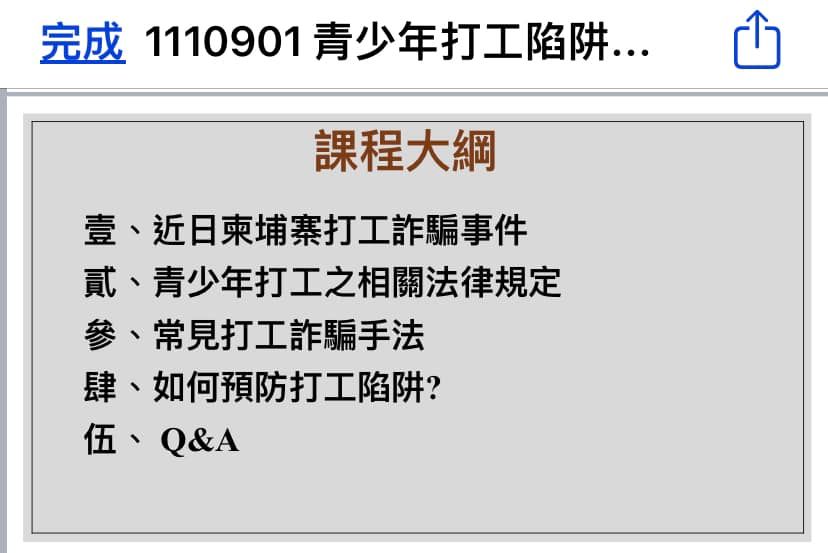 111年9月1日謝富凱律師受邀至湖口高中演講「青少年打工陷阱」。